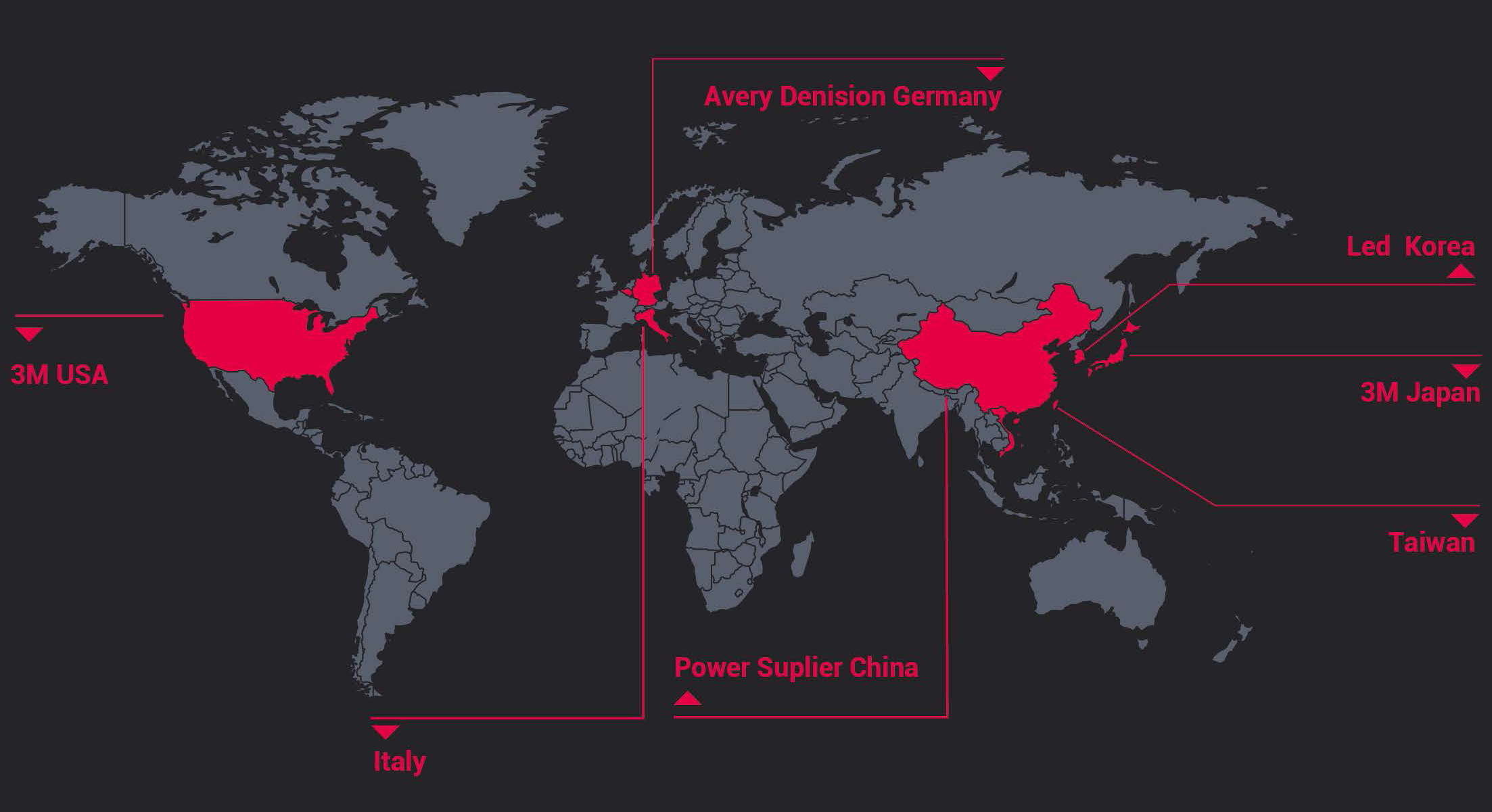 Để có được các sản phẩm đáp ứng các tiêu chí toàn cầu, Red Lotus sử dụng các vật liệu, thiết bị từ các nhà máy cung cấp uy tín hàng đầu trên thế giới.